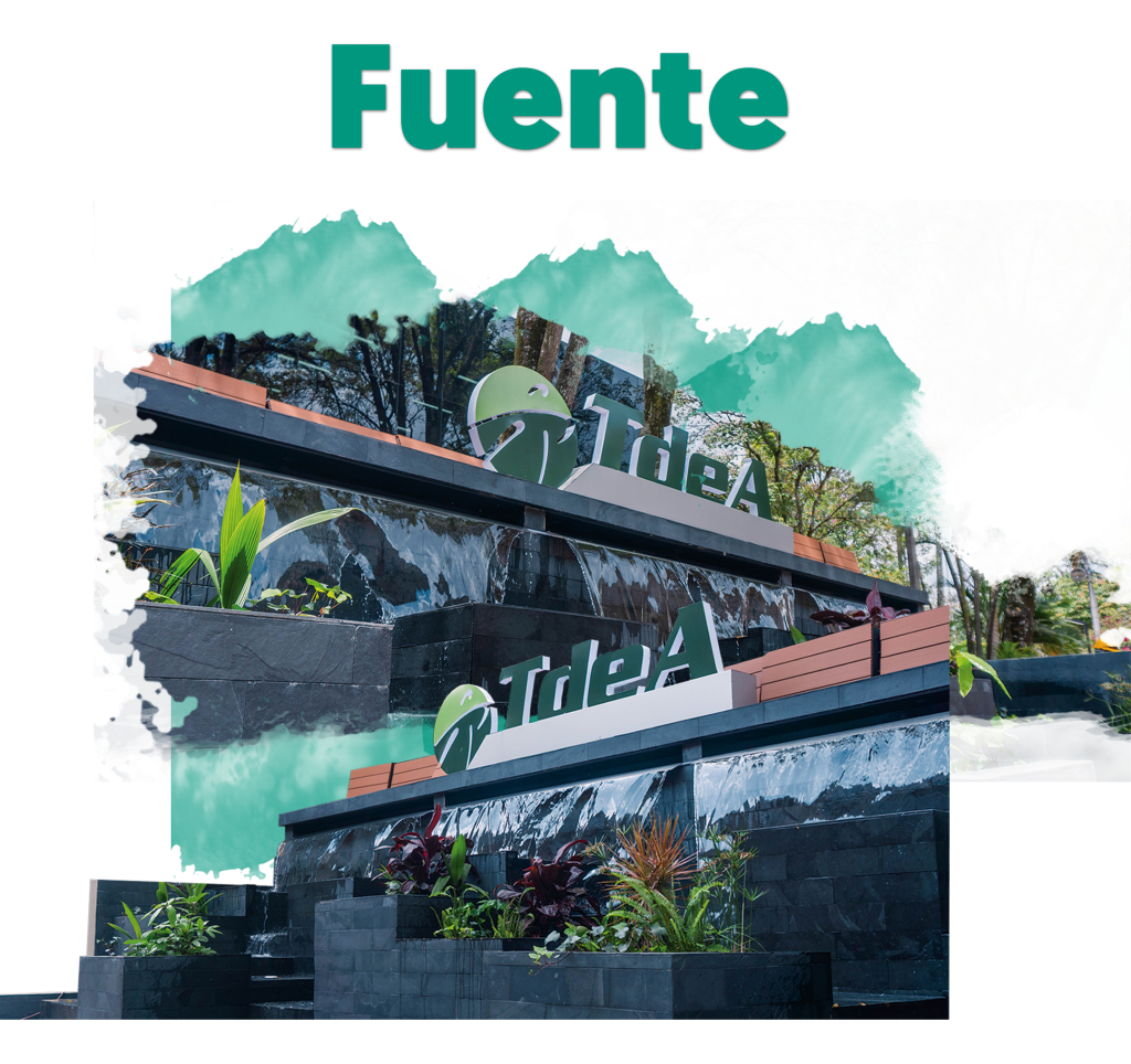 La estructura hídrica integra un área exterior con una fuente ornamental de 44 m², conformada por un espejo de agua y vegetación circundante, que aporta frescura, calidez y conexión con el entorno natural del eco-campus universitario.