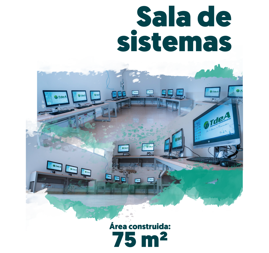 Sala de sistemas N1 y N2: con 14 puestos de trabajo, la primera sala está destinada para el aprendizaje teórico-práctico en informática. La segunda, con 19 puestos de cómputo, está concebida para potenciar el desarrollo de proyectos tecnológicos de alto nivel.