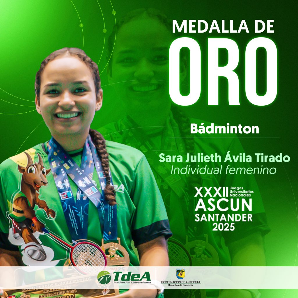 El TdeA arrancó con tres medallas de oro en Bádminton individual masculino, individual femenino y dobles mixtos y una de plata en atletismo lanzamiento de disco, en su participación en los XXXII Juegos Universitarios Nacionales, que se realizan en Bucaramanga hasta el 31 de octubre de 2025.